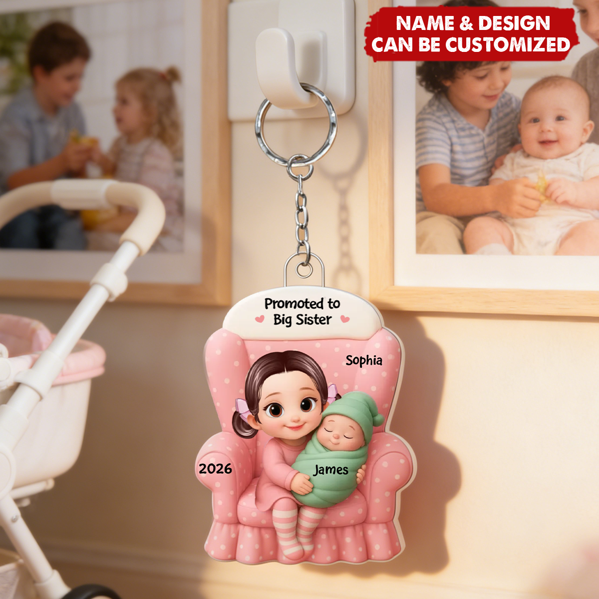 Big Brother, Big Sister And Baby - Personalized Acrylic Keychain, Baby Announcement Gift